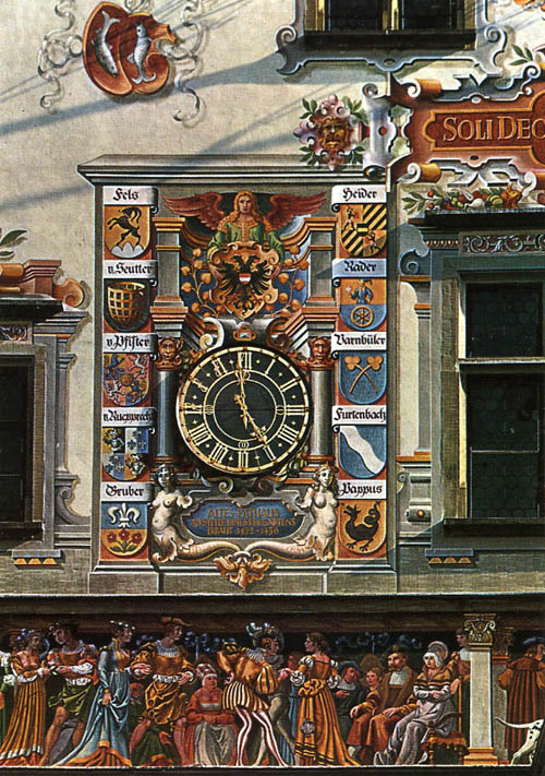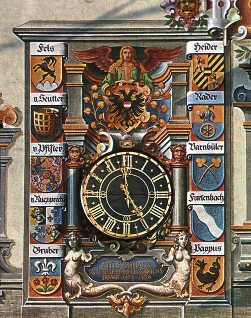 was constructed in the early 1400's. The walls show the coats-of-arms of the city's mayors,